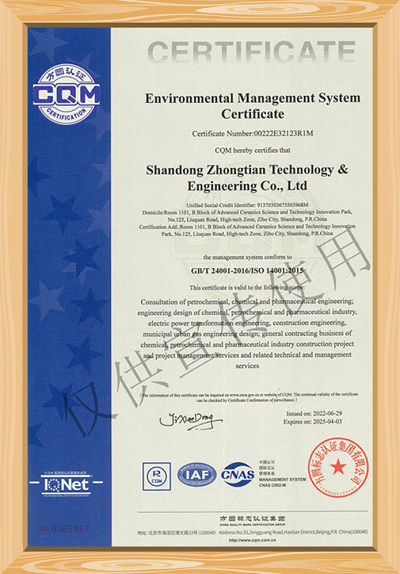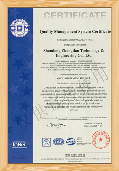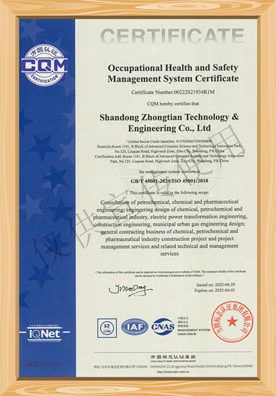 La empresa está aprobada por el Ministerio de Vivienda y Desarrollo Urbano-Rural del Ministerio de Vivienda y Desarrollo Urbano-Rural como unidad de diseño de calificación Grado A en la industria petroquímica y farmacéutica (ingeniería química). La unidad vicepresidenta de la asociación industrial, el director ejecutivo de la Asociación de Diseño Industrial Zibo y la unidad directora de la Alianza de Diseño Industrial Qilu, han sido calificadas como las 30 principales empresas de la industria de servicios y empresas de demostración innovadoras por la Zona de Alta Tecnología durante muchos años. , y es el sistema de certificación QHSE de diseño de ingeniería y unidad de contratación general.